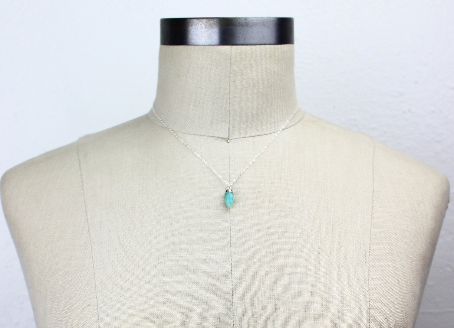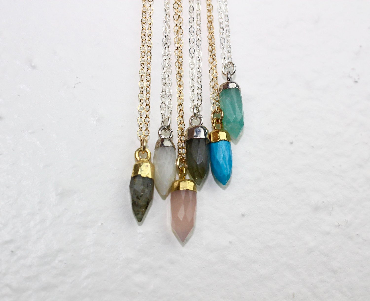 Handmade Tiny Spike Short Pendant Necklaces - Rose Quartz, Moonstone, Labradorite, Amazonite, Turquoise